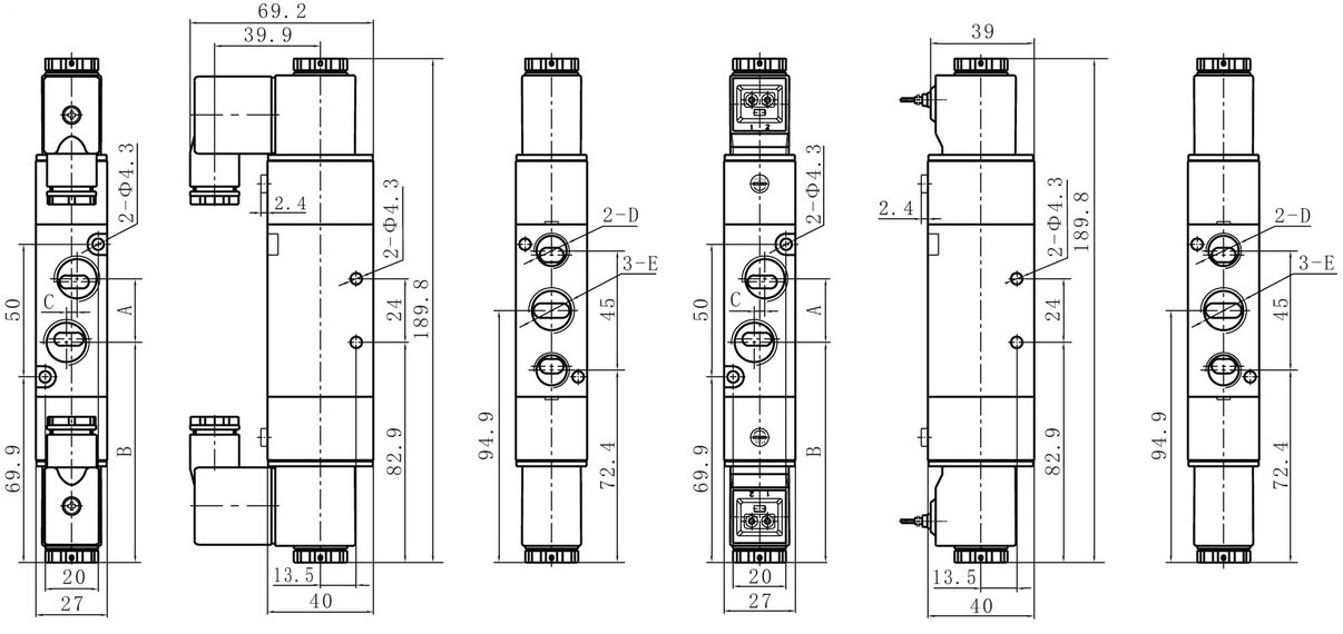4V310 Series directional control valves is a body ported mounting type and valve can be surface mounted.