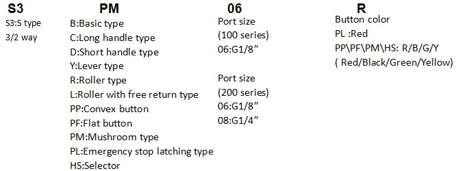 S3 series Red Green Yellow Black Mushroom Pushbutton Mechanical Operated Valve